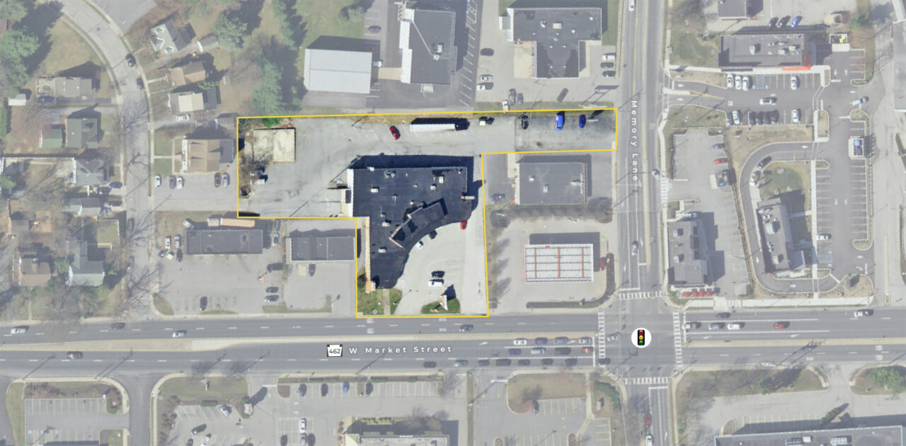 The property has frontage and access on East Market Street and Memory Lane.